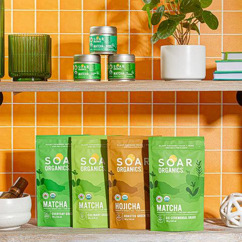 Soar Organics offers a flexible wholesale and bulk program designed for grocers, specialty stores, cafes and everyone in between. Our organic matcha and hojicha products are available in both retail (30g, 100g) and bulk (500g) packaging.